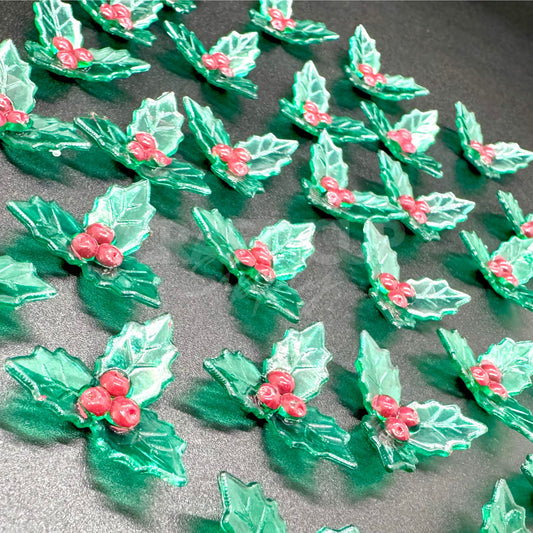 Christmas Holly Cabochons (Pack of 10)