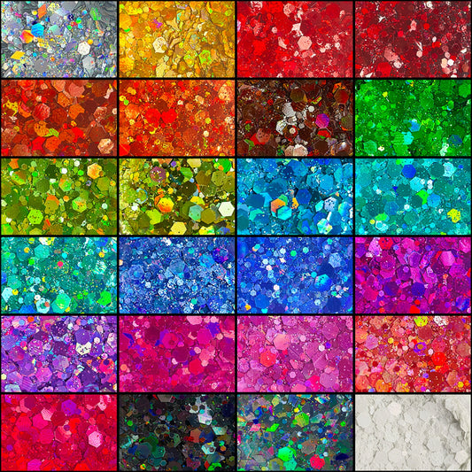 24x 2oz Filled Shaker Jars Glitter Bundle, Over 1300g of Glitters! - SET 6